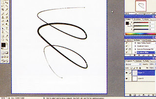 14. Klik semula pada Path Selection Tool dan pilih Stroke Path dan klik OK. Pergi ke Pallette Action dan klik Stop. Hasilnya apa yang anda lakukan pada langkah 10 > 14 dirakam oleh Photoshop.